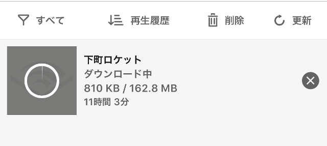 この場合はAppを終了し(ホームボタンで閉じるのではなく、完全にタスクキルし)再度Appを開き直すことで、ダウンロードを開始することができました。